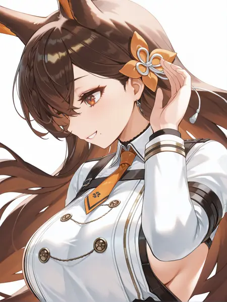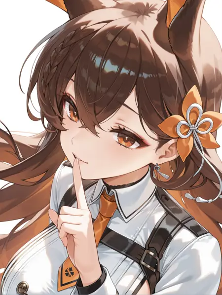 トリガーワード ・chikuma,bunny_ears,brown hair,orange eyes,mole under mouth,