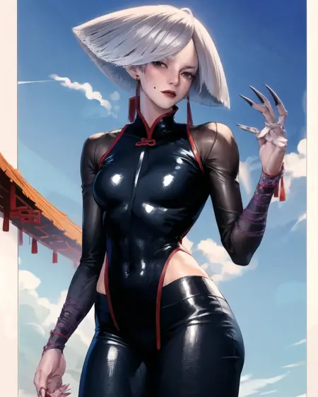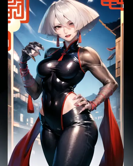 akims, mole, claw \(weapon\), clothing cutout, dress, chinese clothes, bodysuit, pants