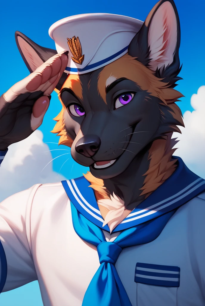 Wesley, 1girl, anthro, furry, red fox, black fur, gradient fur, fluffy tail, snout, purple eyes, soft muzzle