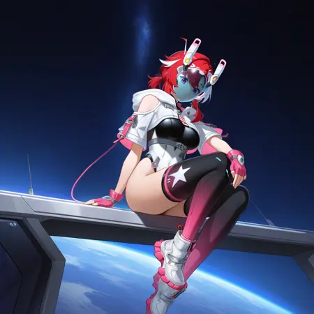 EikaStrv, Fol002, Ek_Gle, 바디수트 위의 레오타드, 짧은 소매, 흰색 안테나, 회색 마스크, 빨간 머리, 흰색 스트라이프, 반투명 마스크, 라디오 안테나, 안테나, 가짜 동물 귀, 별 프린트, 소매 없는 바디수트, 터틀넥, 검은 바디수트, 옷 아래의 바디수트, 흰 레오타드, 가슴 아래, 회색 벨트, 회색 하네스, 커프스 재킷, 분홍 지퍼, 닫힌 재킷, 높은 칼라, 흰 재킷, 후드 재킷, 후드 아래, 어깨 컷아웃, 흰 소매, 반투명 소매, 그라디언트 장갑, 분홍 장갑, 손가락 없는 장갑, 팔꿈치 장갑, 배꼽 가린 상태, 검은 허벅지 양말, 그라디언트 허벅지 양말, 분홍 허벅지 양말, 흰 발목 부츠,