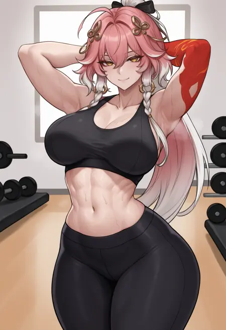 触发词 + 外观: ch4ngli, 静音记号, 身体纹身, 彩色四肢, 单只手套, 红色皮肤, 长发, 多色头发, 粉色头发, 白色头发, 眼睛间的头发, 天线发, 辫子, 马尾, 头饰, 黄色眼睛, 大乳房