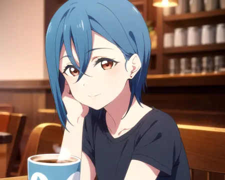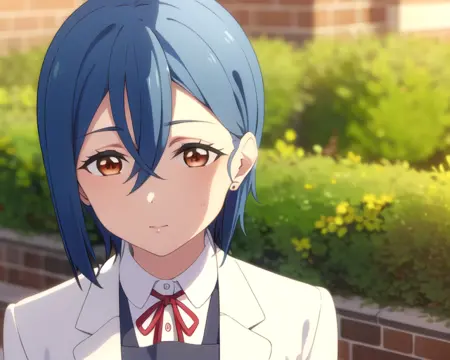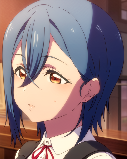 blue hair, short hair, brown eyes, bangsRecommended LoRA ratio: 0.7-0.8