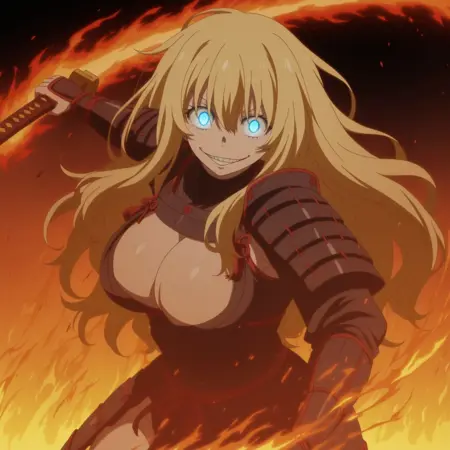 PillarAmaterasu,金发,蓝眼,长发,火焰,大胸,宽臀,裸体,