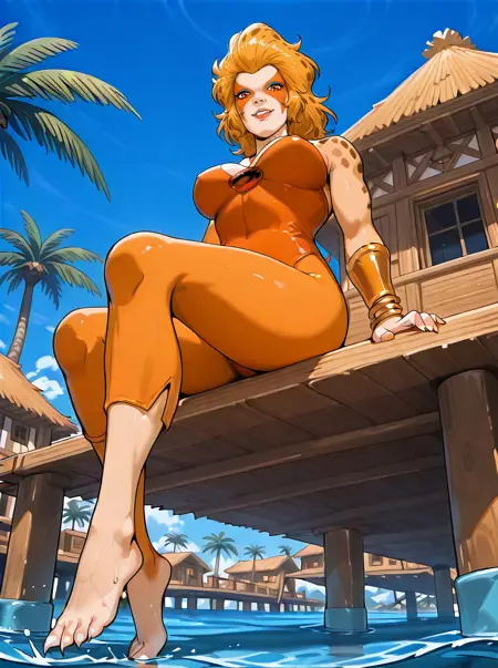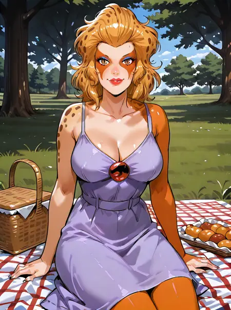 2. If you generate images of her wearing clothes other than her normal costume, the model may place a Thundercats Emblem on her chest anyway. See the picnic image in the Showcase for an example of this. I used over 200 images to train the LoRA, and the emblem is featured in almost all of the front view images. I'll see if I can adjust this in the next version.