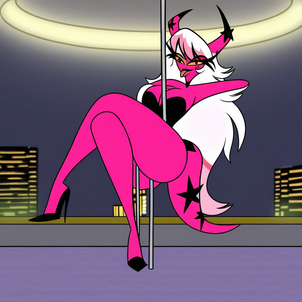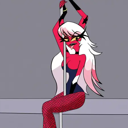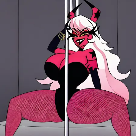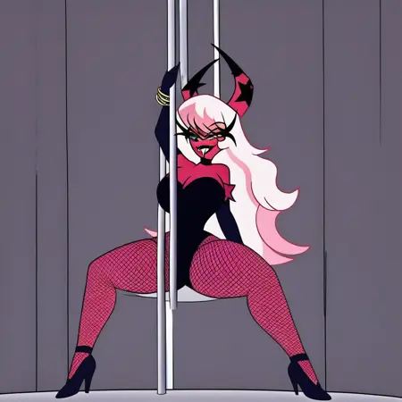 Verosika Mayday from Helluva Boss, pink skin, succubus, white hair
