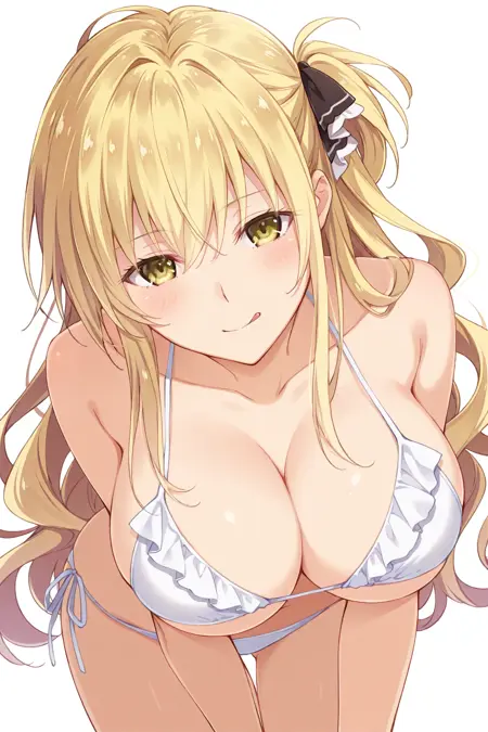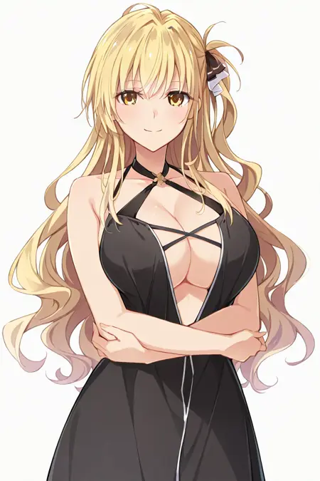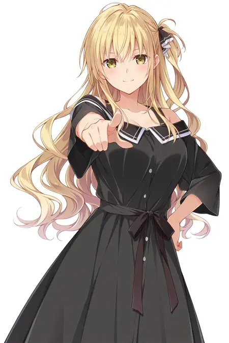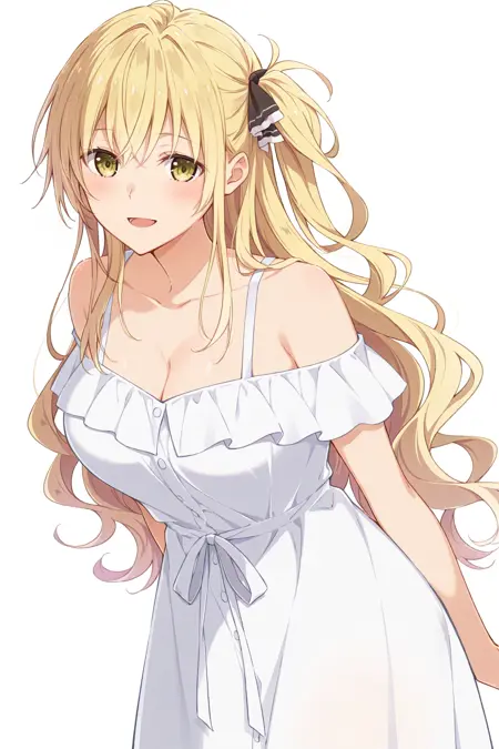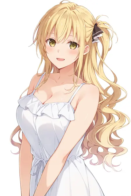 ShindouYuuka, 금발, 긴 머리, 물결 모양 머리, 한쪽만 올린 머리, 옆머리, 황색 눈, 머리 띠
