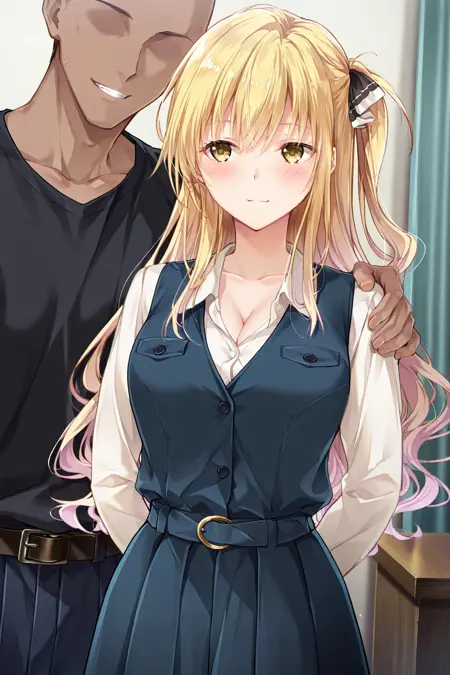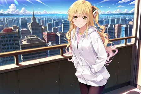 ShindouYuuka,金发,长发,波浪发,单侧束发,鬓发,琥珀色眼睛,发带