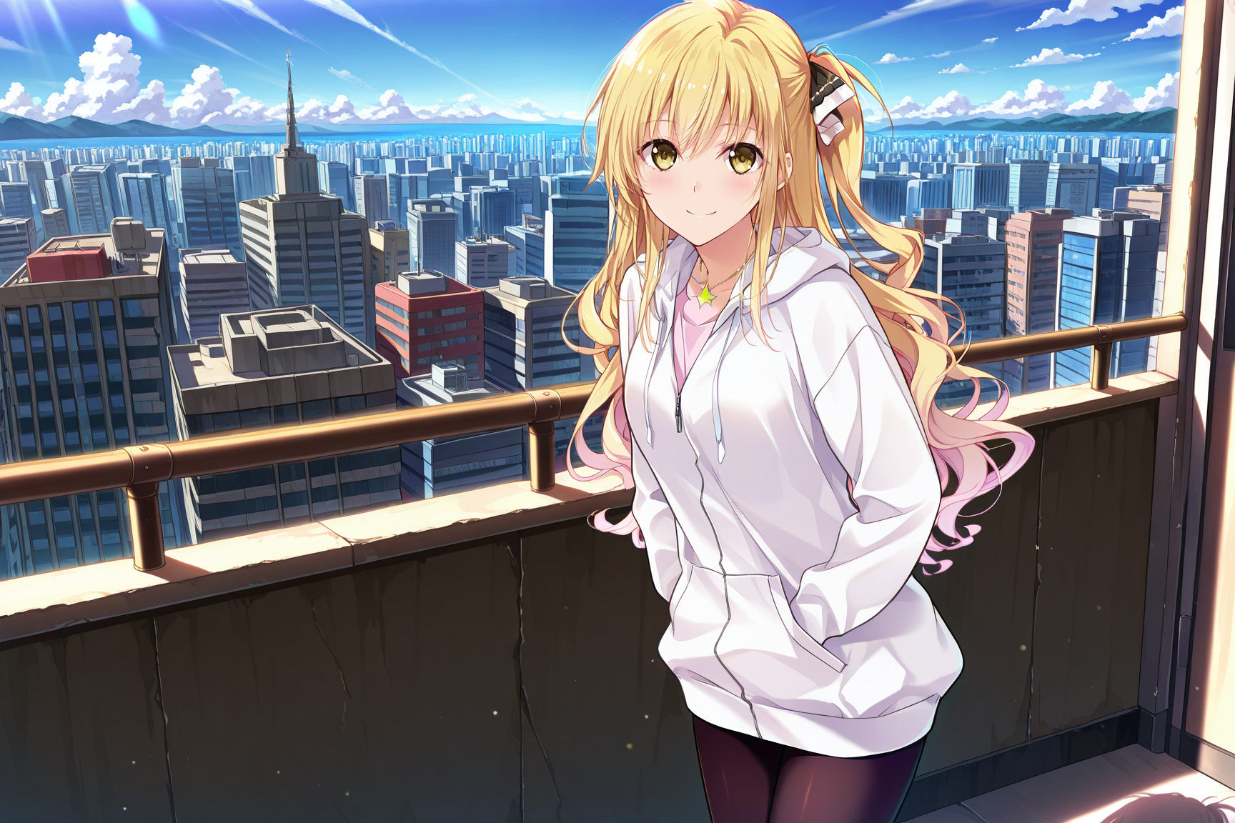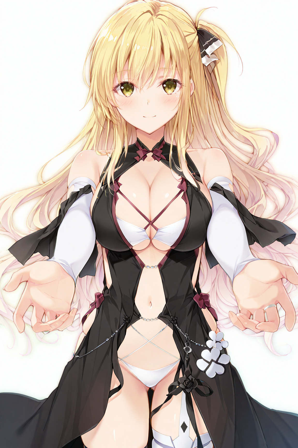 ShindouYuuka,金发,长发,波浪发,单侧束发,鬓发,琥珀色眼睛,发带