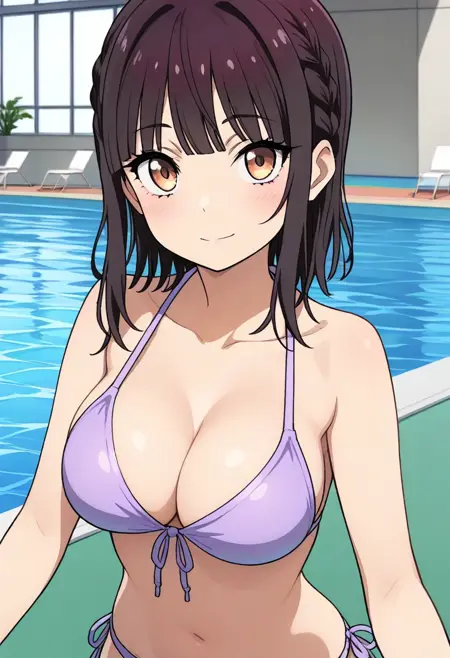 ・sumifuji, medium hair, side braid, blunt bangs