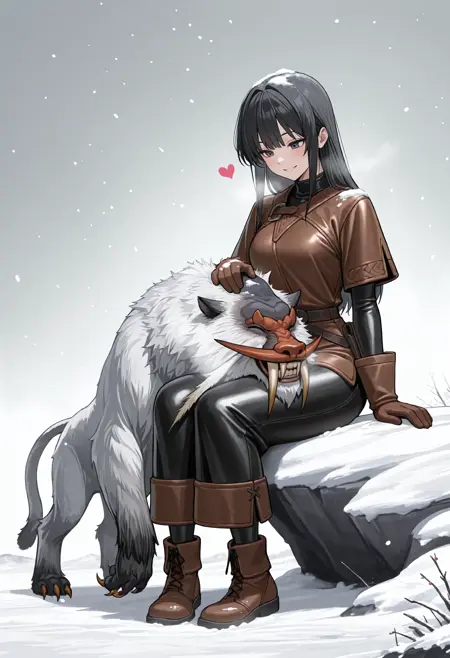 辅助/次要触发词和标签:獠牙,爪子,张开的嘴,雪
