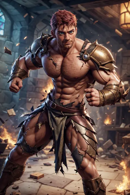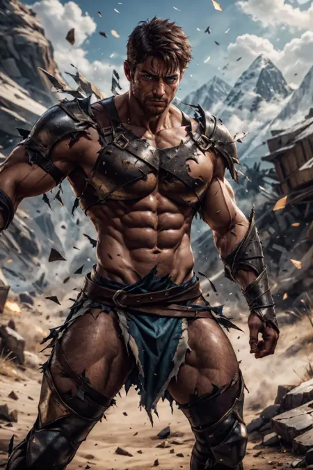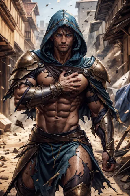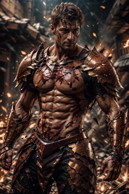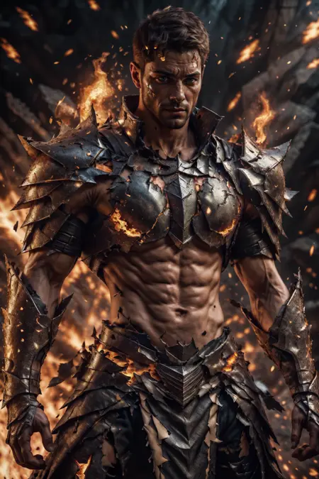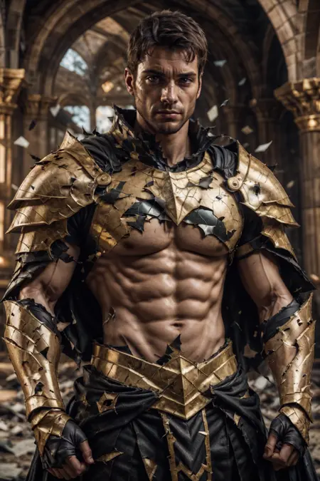 これは昔、とても前に作ったもので、またやり直すと自分に約束したんだ。でも、トレーニングデータを既に削除してしまい、再検索するのも面倒なので、ここに載せておくよ、lol。大抵の場合、アーマーの布部分だけが裂ける。SDは布の裂け目を固体部分の破損よりもはるかにうまく処理するからだ。しかし、たまにアーマーの一部も破損してしまうこともある。