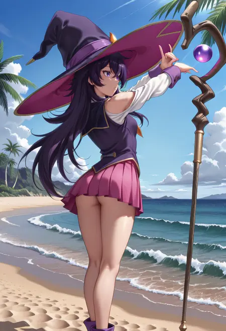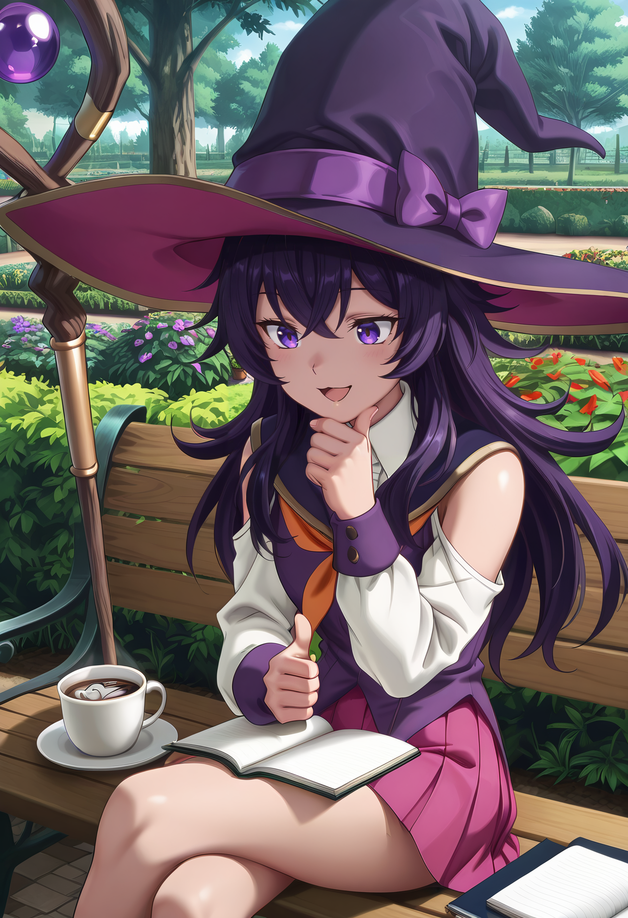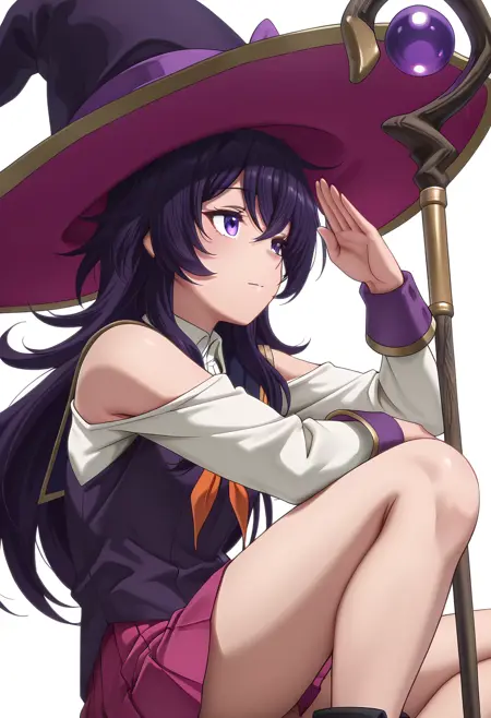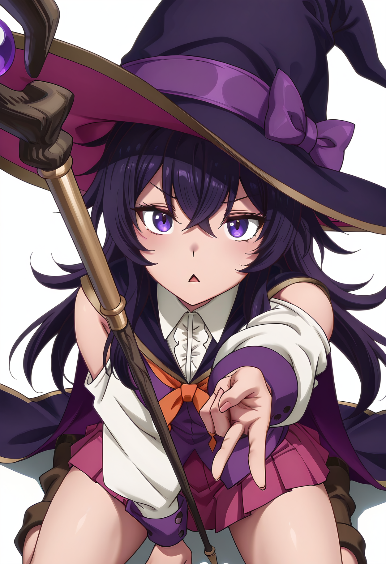witch hat,pink pleated skirt,school uniform, shoulder cutout,