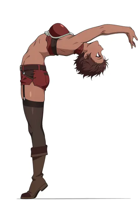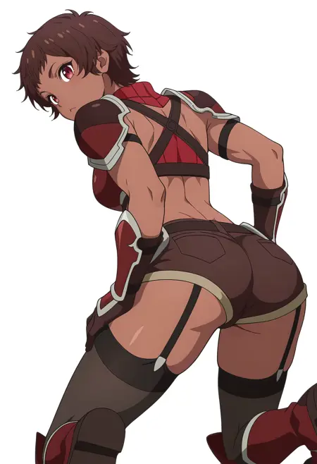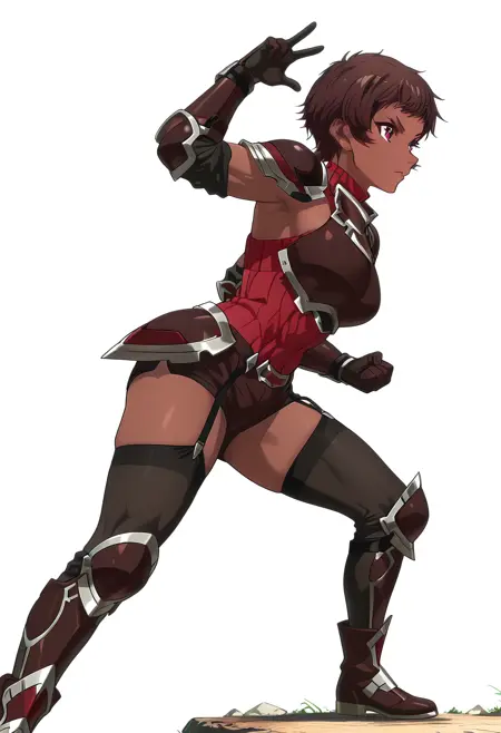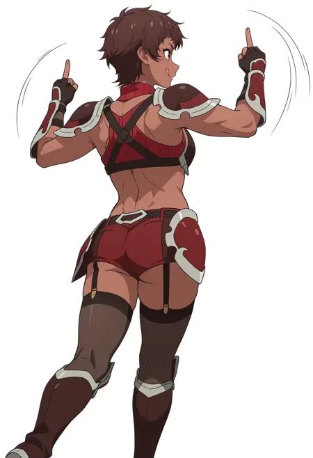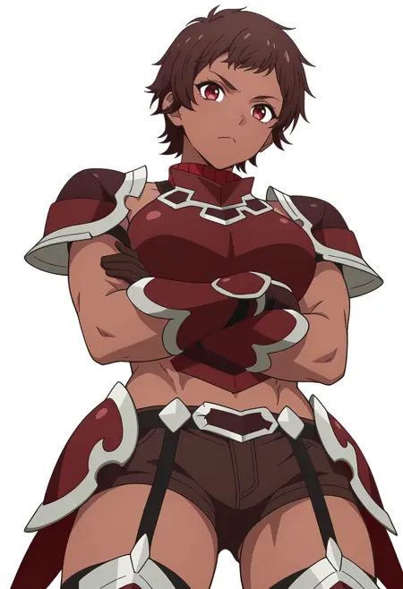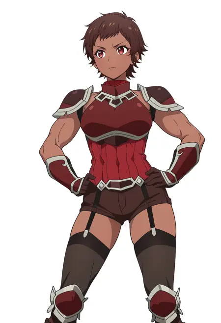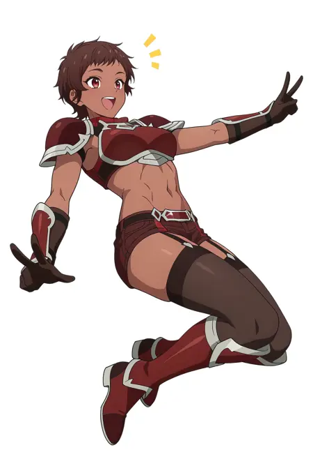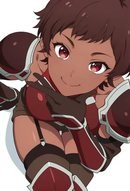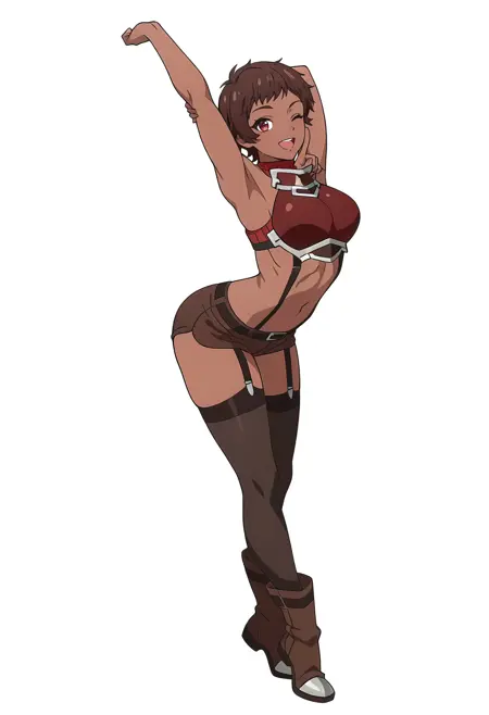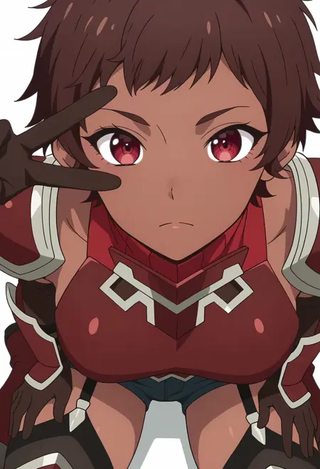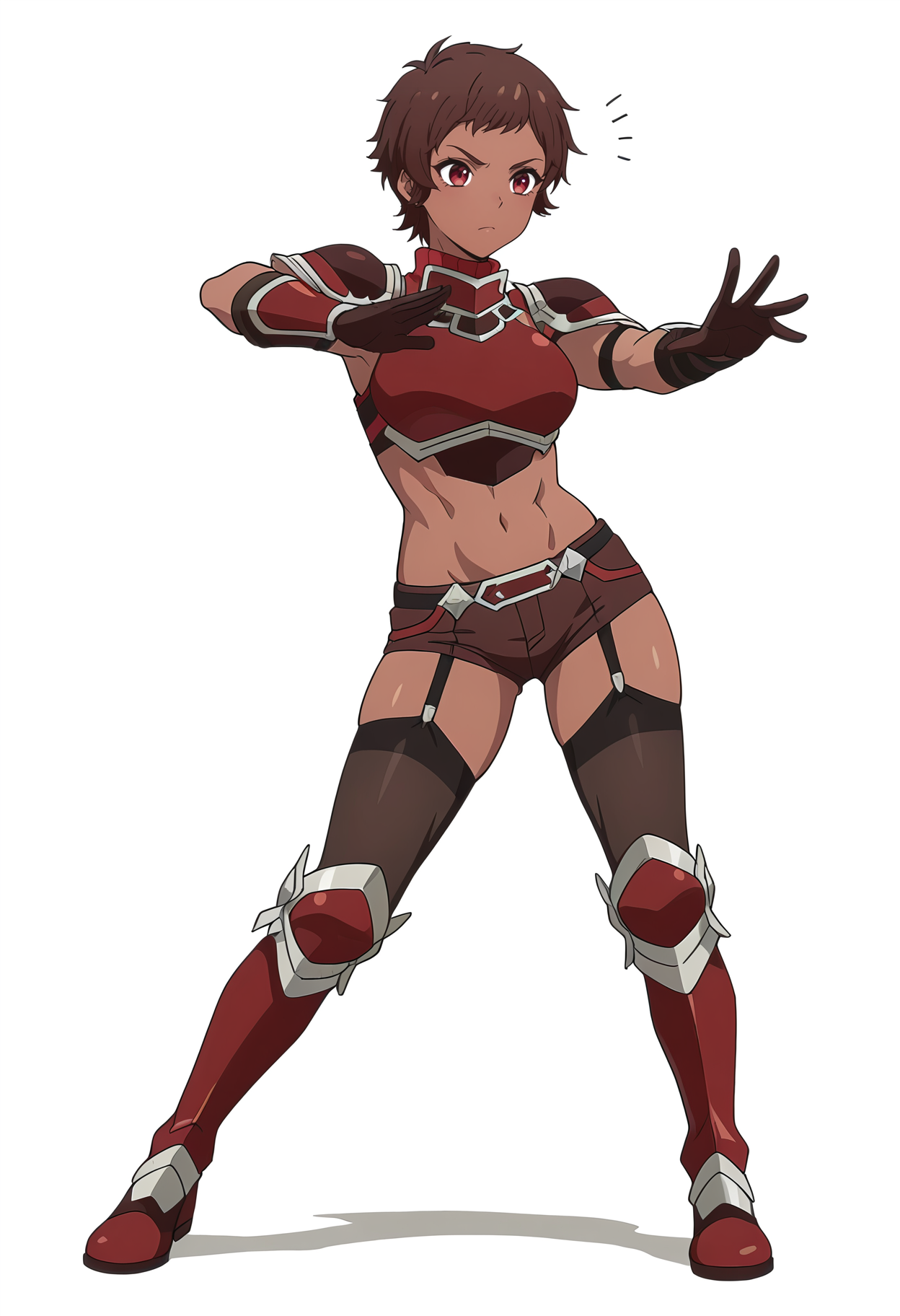 blossom/cnn, 1girl, brown hair, dark skin, short hair, red eyes,toned,