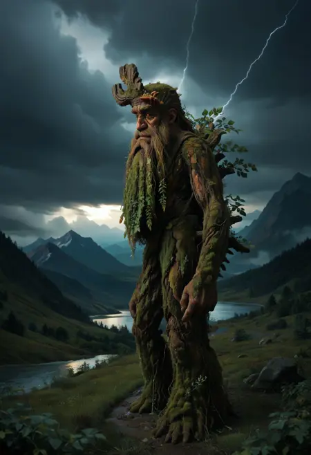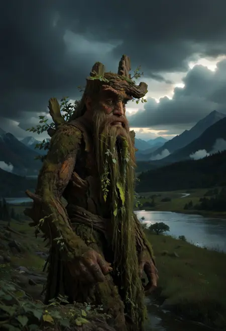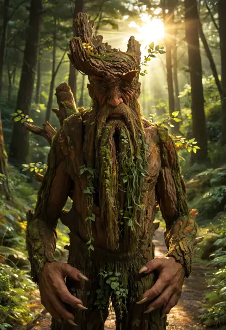 基本プロンプト: treebeard, ent, yellow eyes, beard, claws