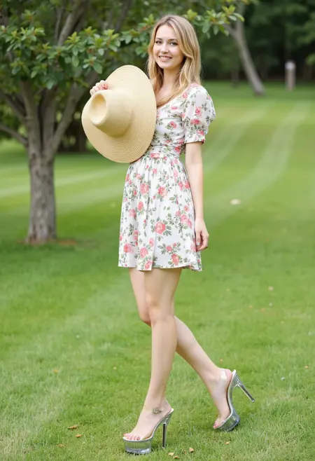 당신의 캐릭터가 햇살 가득한 꽃무늬 숏드레스를 입고 푸른 자연 속에서 발을 살짝 교차시키며, 마치 여왕처럼 그 힐을 자랑하는 모습을 상상해보세요! 👑🌿 그리고 이 힐의 투명한 마법은 섹시한 우아함과 야릇한 매력을 동시에 더해줍니다! 🔥💕 장난스럽지만 우아한 분위기에 완벽하게 어울립니다!