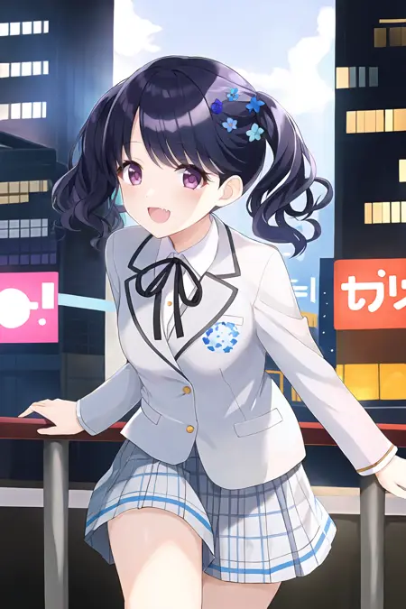 그녀의 복장에 나타나야 하는 엠블렘은 블레이저를 착용할 때만 표시되어야 하지만, 다른 복장으로 프롬프트를 입력할 때 빠져나오는 문제가 있습니다. 이 문제를 해결하려면 LoRA 강도를 낮추고 부정 프롬프트에 학교 엠블렘을 추가하는 것을 권장합니다.