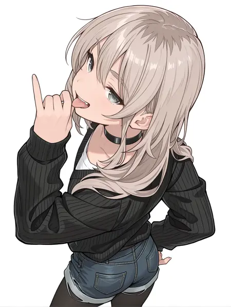 의상(임시) ・black sweater, cutoffs, long sleeves, black pantyhose, denim shorts, legwear under shorts, cross-laced footwear,