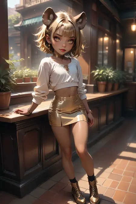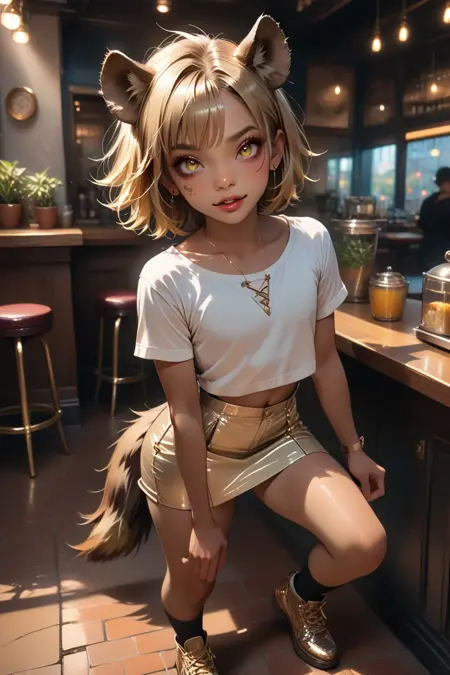 触发词:Shenzi, femboy,鬣狗男孩,鬣狗耳朵,鬣狗身体斑点,鬣狗尾巴,