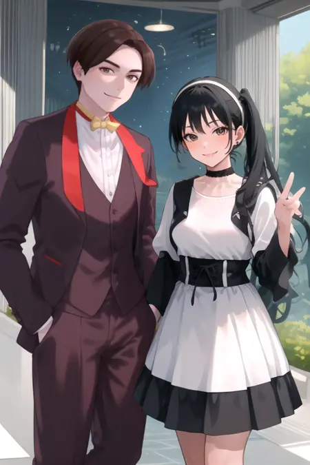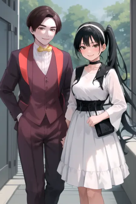 AceTsumuri, a man and a woman, hetero, standing, smile, cowboy shot