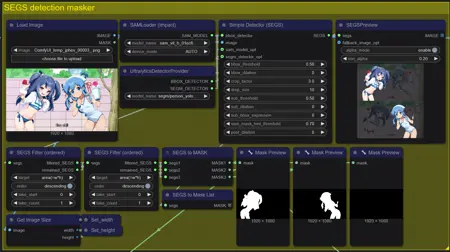 여러 캐릭터를 개별 마스크로 분할할 수 있는 워크플로우.