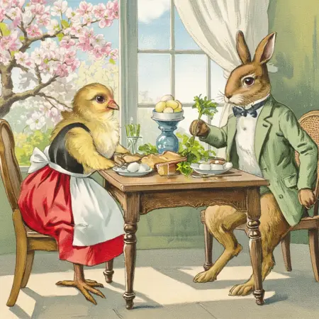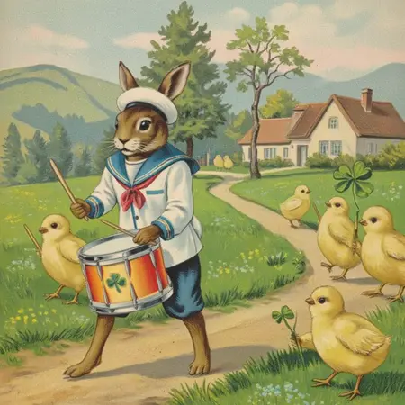 이 모델은 부드러운 파스텔 색조, 섬세한 붓터치, 빅토리아 시대의 우아함을 통해 빈티지 부활절 카드의 분위기를 재현합니다. 에드워디언 봄 우편엽서에서 영감을 받아, 생기를 되찾는 자연의 달콤함—매력적인 병아리, 피어나는 제비꽃, 황금색 악센트, 따뜻한 햇살—을 전달합니다. 꽃무늬 테두리와 빈티지 필터로懷舊적인 장면을 만들기에 완벽합니다.
