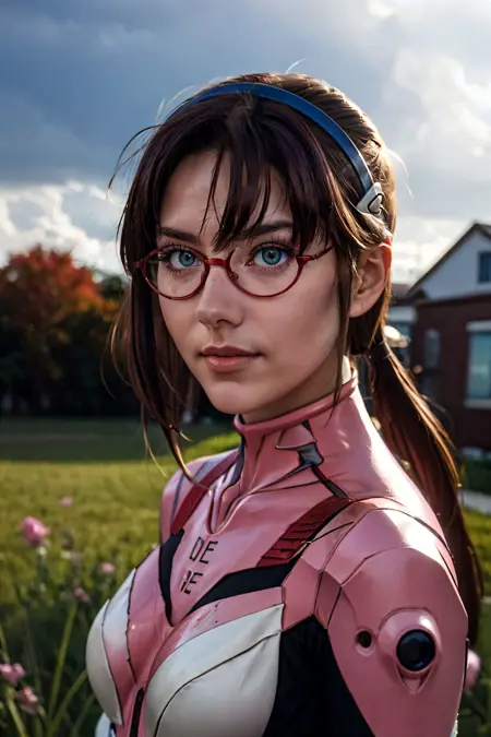 SD正面提示(明日香): LORA, realistic, masterpiece, realistic, detailed, 8k, 1girl, beautiful photography of makinami mari illustrious, pink bodysuit, brown hair, plugsuit, glasses, hairband, red-framed eyewear, slim body, eyelashes,....