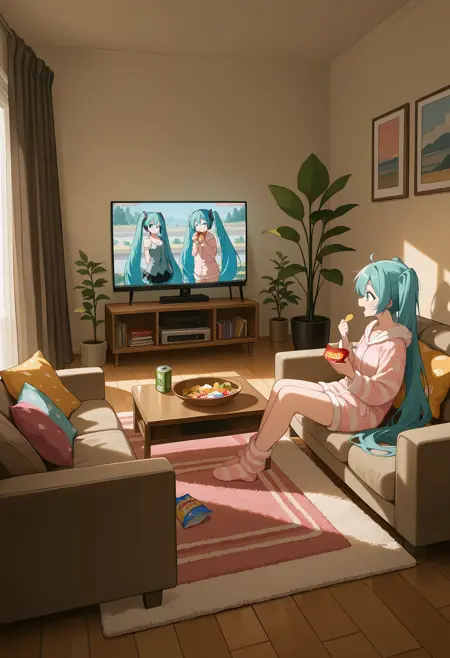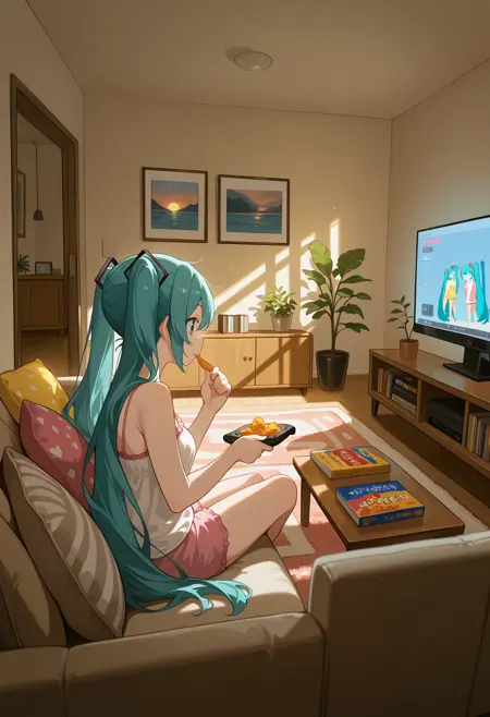此LoRA基于Illustrious模型训练,专为绘制动漫或半写实风格的现代客厅内部场景而设计。