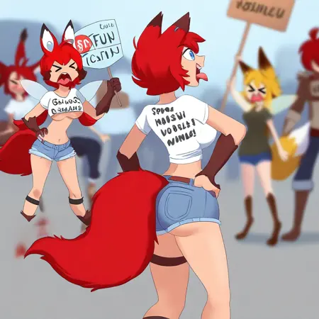 オレンジ色の髪、リスの狐の耳、狐リスの尾、ilisfoxfuroncheeks、狐リシの腕、
