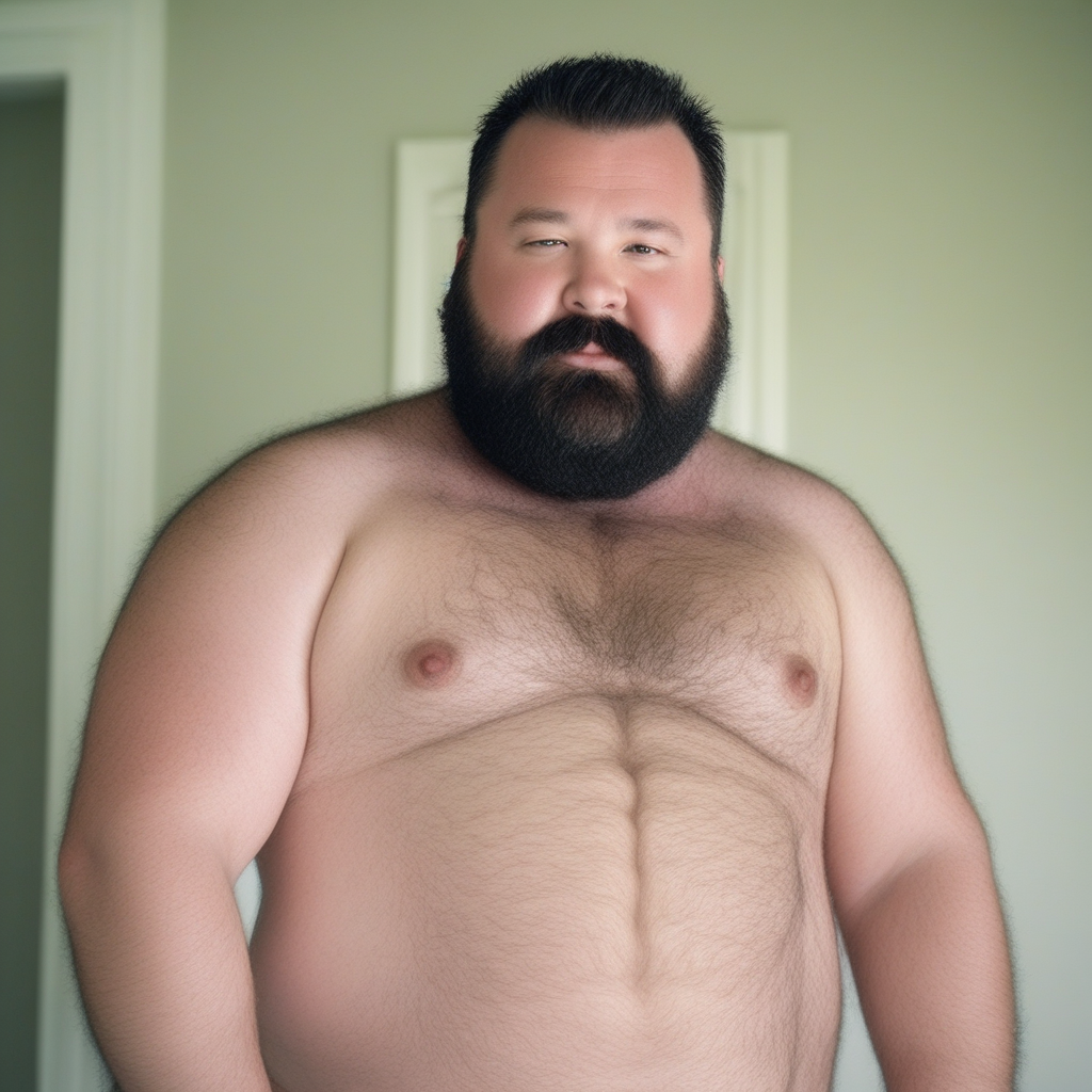 A hot chubby man with hairy body, nice beard ,ass and penis