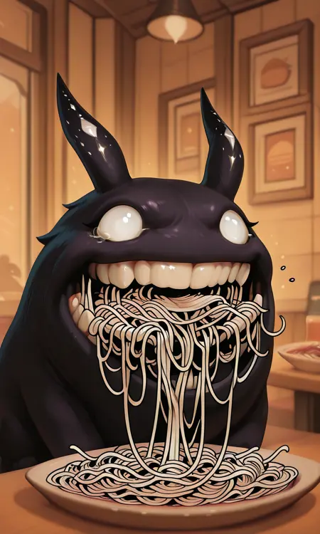 我其实从未玩过《云顶之弈》,但我看过别人玩,看到了“模糊混沌”,于是我想为它制作一个模型。当时只有的一两张图片分辨率足够用于训练数据,因此我通过向ChatGPT展示图片并不断修正,直到结果足够接近,从而创建了一个完整的数据集。唯一的问题是,它很难给它画出六条腿,通常只会画出四条,但你可以尝试使用标签“extra legs”,有时它会恰好生成六条腿。
