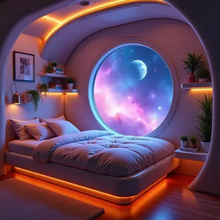 此LoRA代表一座充满活力、未来感十足的宇宙飞船内部,具有电影级细节和写实美学。飞船内的每个区域都设有大型全景窗户,窗外是色彩斑斓、奇幻的外太空。飞船采用流畅的建筑结构、发光界面、环境照明,并贯穿始终的高科技设计。该模型非常适合生成无角色的详细科幻环境,捕捉视觉丰富且沉浸式星舰的氛围。