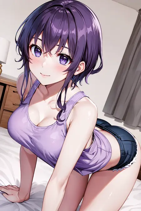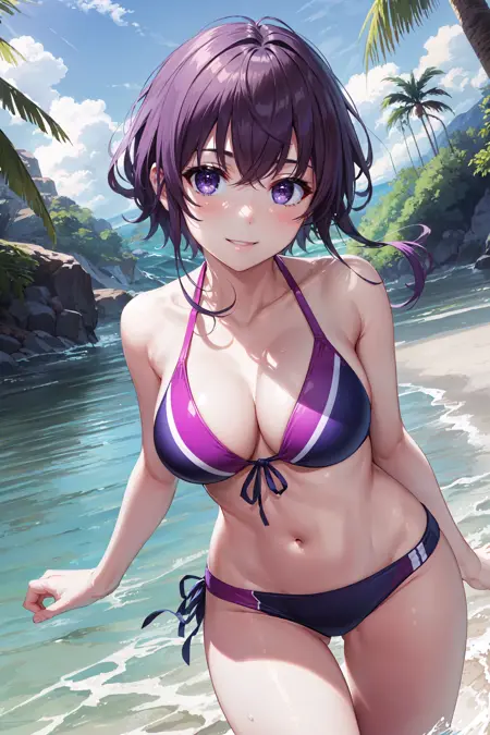 キャラクタートリガー:michiru hyodo、紫髪、長い髪の束がついた短髪、紫色の目