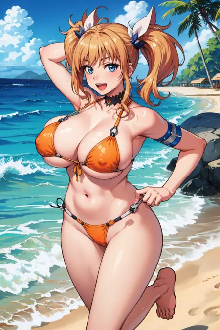 - タイマニンRPGのスタイルには、「defKirara, twintails, hair ornament, micro bikini, highleg leotard, detached sleeves, elbow gloves, thighhighs」を追加してください。
