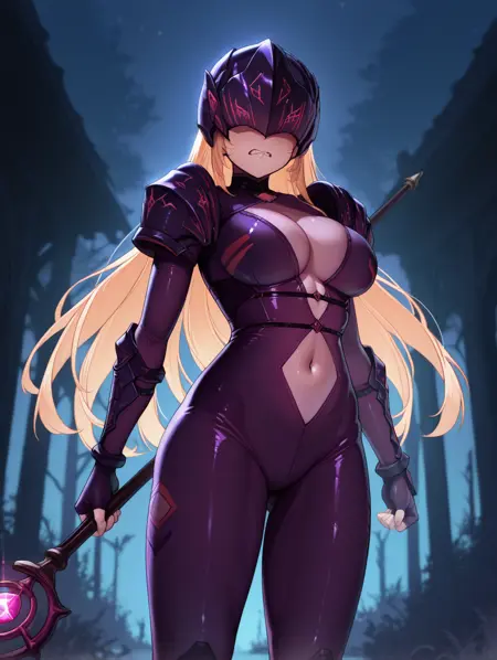 cammie, 1girl, solo, long hair, large breasts, gloves, navel, cleavage, very long hair, fingerless gloves, armor, clothing cutout, bodysuit, shoulder armor, blue eyes,