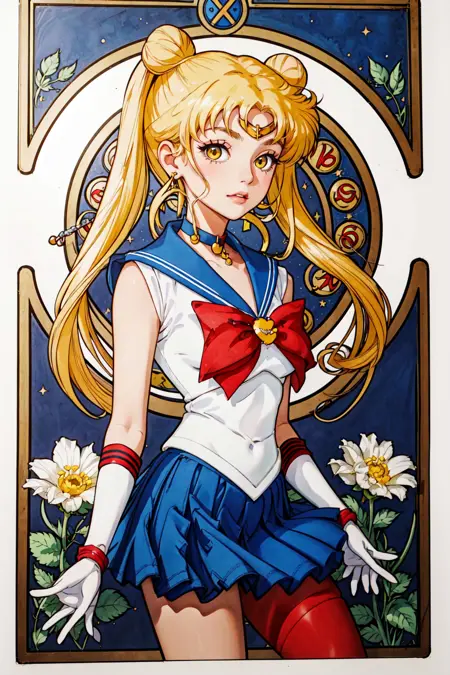 SDXL LoRAと同様に、これはアール・ヌーヴォー風のセーラームーンです。