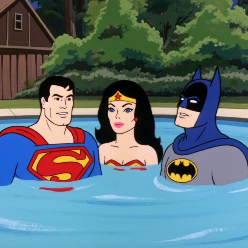 Source was 111 images (1024x1024) from several episodes of Superfriends from 1977 and 1978. Every caption started with "superfr1ends style image, " then I tagged any characters that appeared, so it does great with the main characters (Superman, Wonder Woman, Batman). Doesn't know some of the lesser characters but I was more just trying to train the style and it usually works pretty well. Some random subjects and subjects I assume Flux knows really well can retain a more realistic look, but upping the strength to 1.1 or 1.2 can give it that more cartoon look.