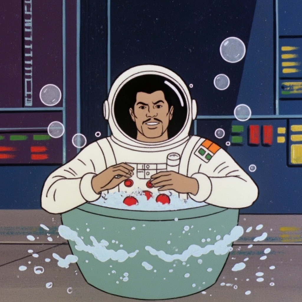 astronaut in a bubble bath haha - looks like some hall of justice action going on in the background there