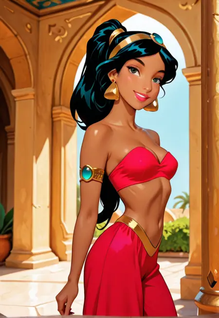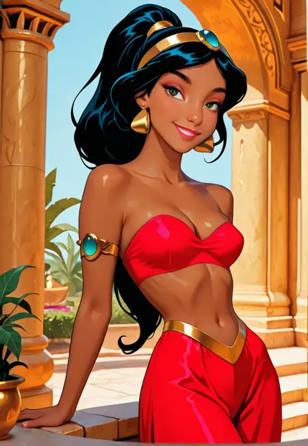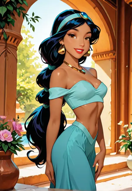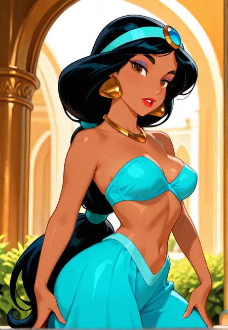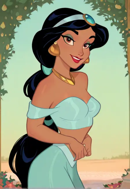 蓝色阿拉伯服装,珠宝,耳环,项链,短上衣,露肩衬衫,宝石