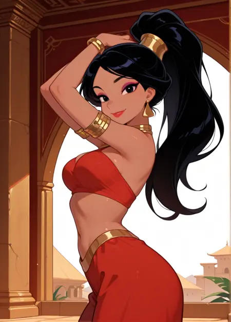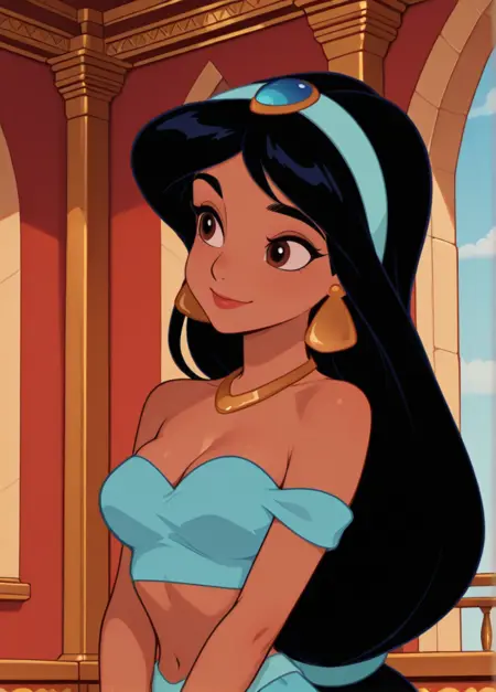 青いアラブ風の服、ジュエリー、イヤリング、ネックレス、キャップトップ、肩出しシャツ、宝石