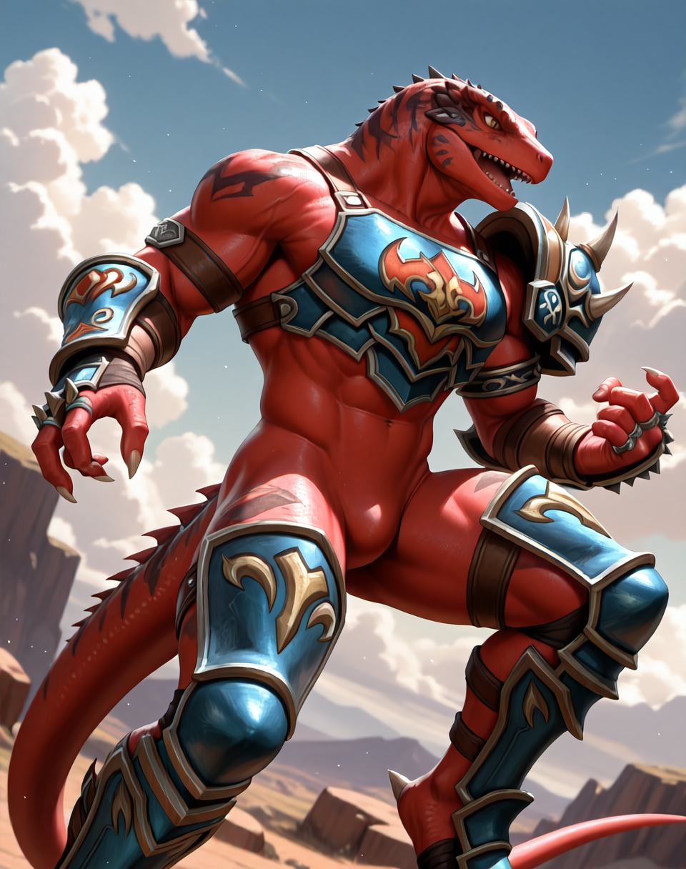 Prompts for this lora are ( Lizardman, Soulcalibur, muscular, lizard, ). The lora is versatile when it comes to skin colors, making it easy to set the skin color by just typing it in the prompts.