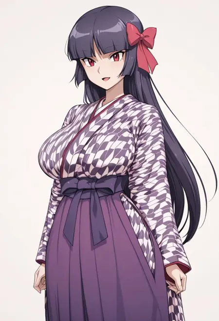 purple hakama,yagasuri,japanese clothes,kimono,long sleeves,hair ribbon,