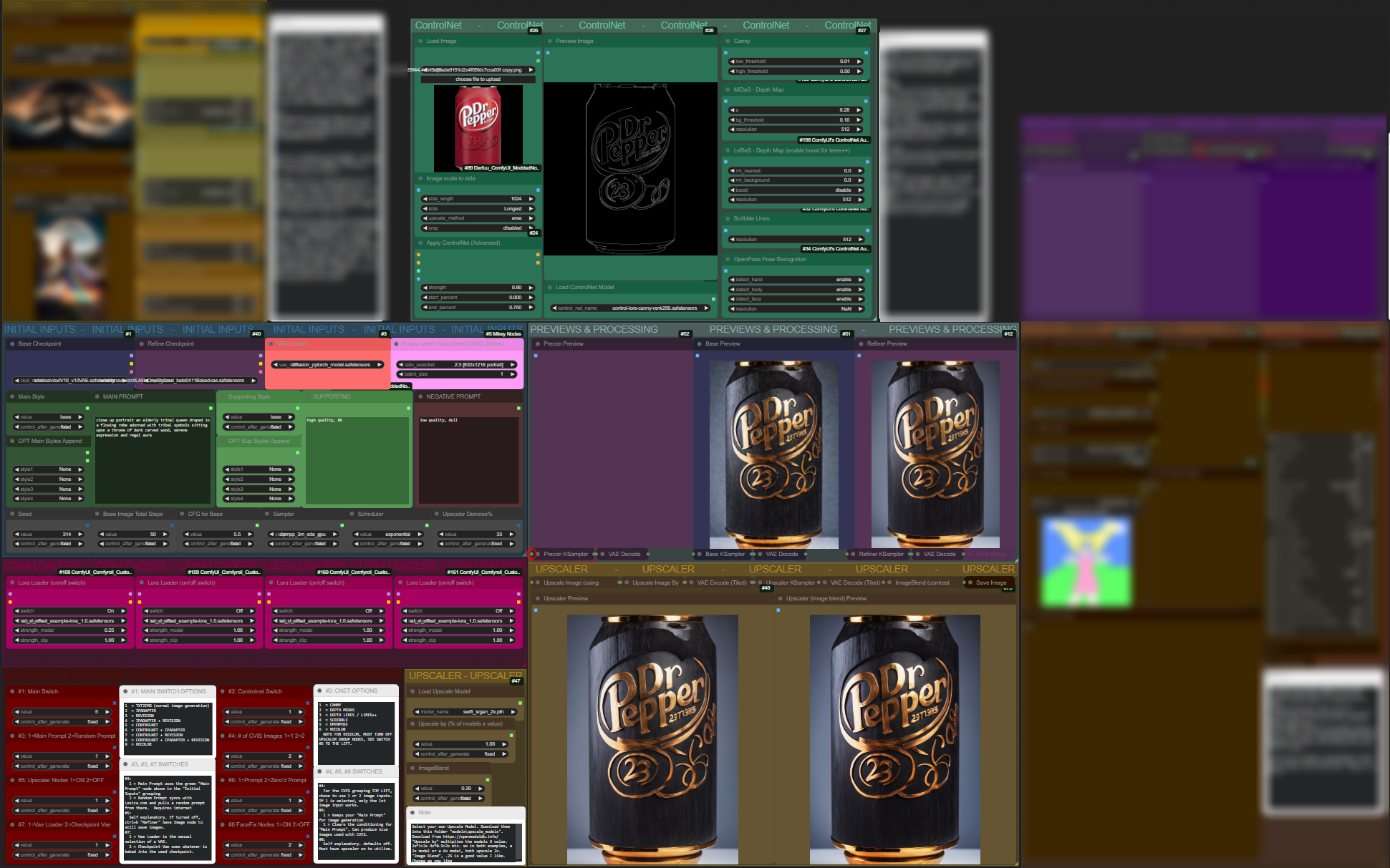 This workflow is mostly created for my own purposes. However, it is highly adaptive given the ability to combine nearly every aspect of it. There are a ton of logic nodes working behind the scenes to work all the switches together properly.