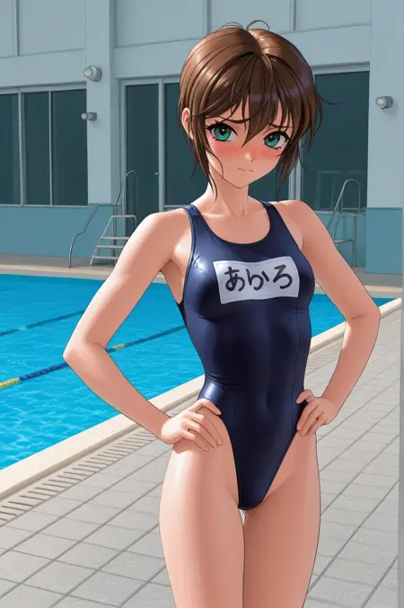 ビキニ、学校用水着、ワンピース水着、名札、素足、破れた水着、
