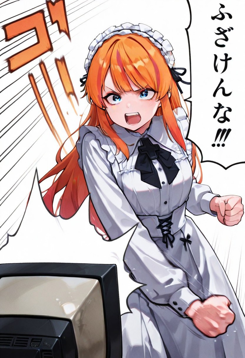 蓝眼睛,长发,1个女孩,橙色头发,多色头发,