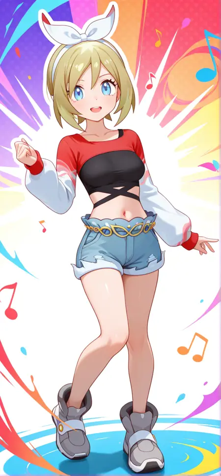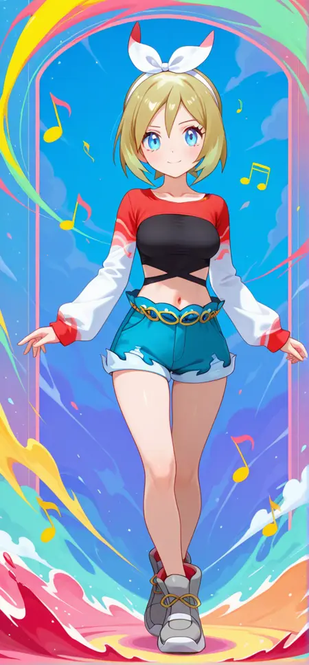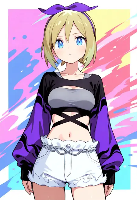 | Trained Words | scirida, def colors, blue eyes, blonde hair, short hair, bangs, white hairband, bow hairband, collarbone, long sleeves, white sleeves, red shrug \(clothing\), black crop top, single strap, midriff, navel, blue shorts, gold chain belt, high tops, grey footwear, white footwearCopied! scirida, ex colors, blue eyes, blonde hair, short hair, bangs, light purple hairband, bow hairband, collarbone, long sleeves, light purple sleeves, black shrug \(clothing\), grey crop top, grey single strap, midriff, navel, white shorts, silver chain belt, high tops, light purple footwear, black footwearCopied! |
