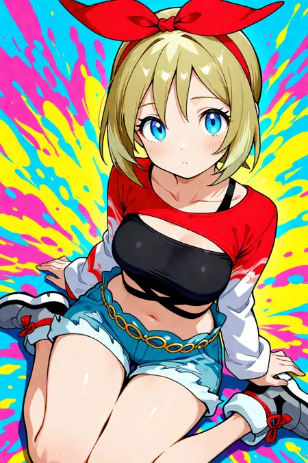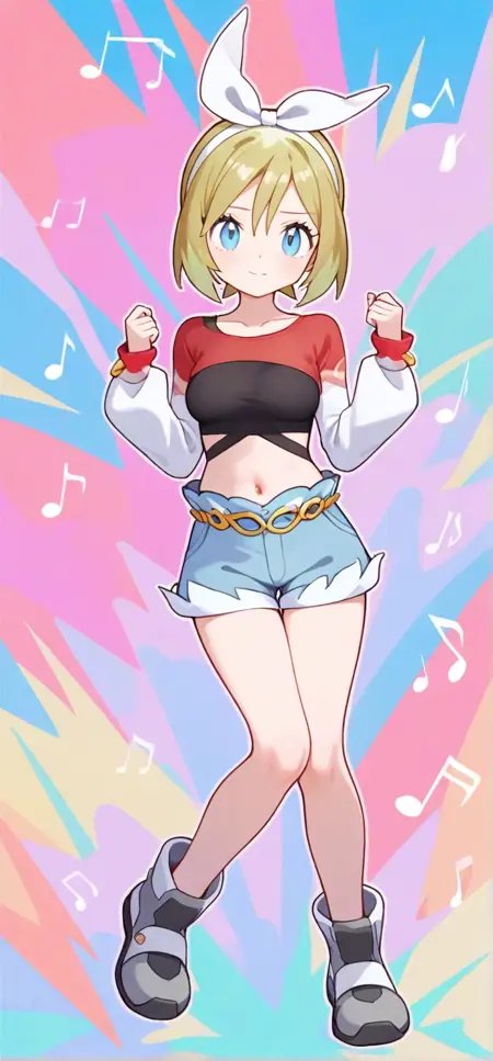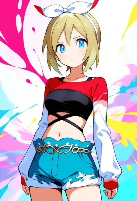 | 训练词汇 | scirida, def colors, blue eyes, blonde hair, short hair, bangs, white hairband, bow hairband, collarbone, long sleeves, white sleeves, red shrug \(clothing\), black crop top, single strap, midriff, navel, blue shorts, gold chain belt, high tops, grey footwear, white footwear已复制! scirida, ex colors, blue eyes, blonde hair, short hair, bangs, light purple hairband, bow hairband, collarbone, long sleeves, light purple sleeves, black shrug \(clothing\), grey crop top, grey single strap, midriff, navel, white shorts, silver chain belt, high tops, light purple footwear, black footwear已复制! |