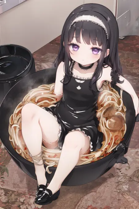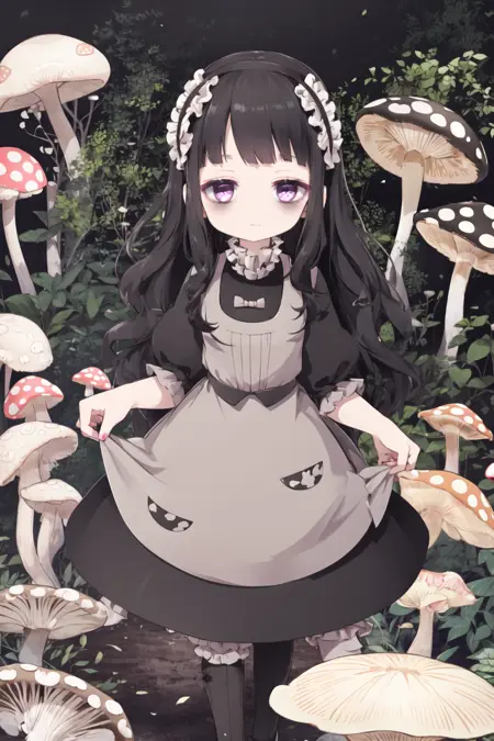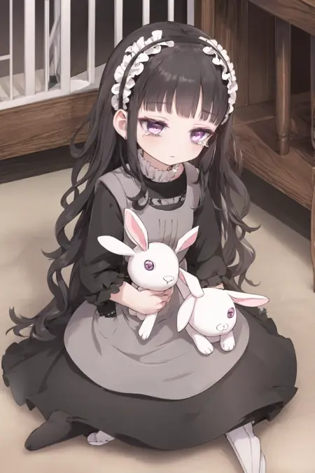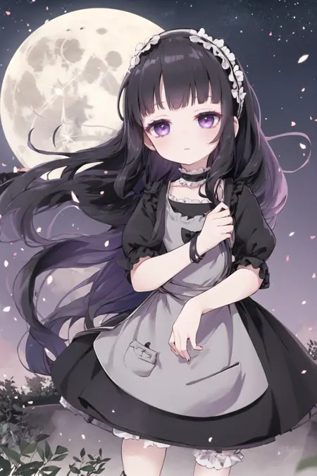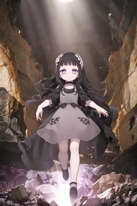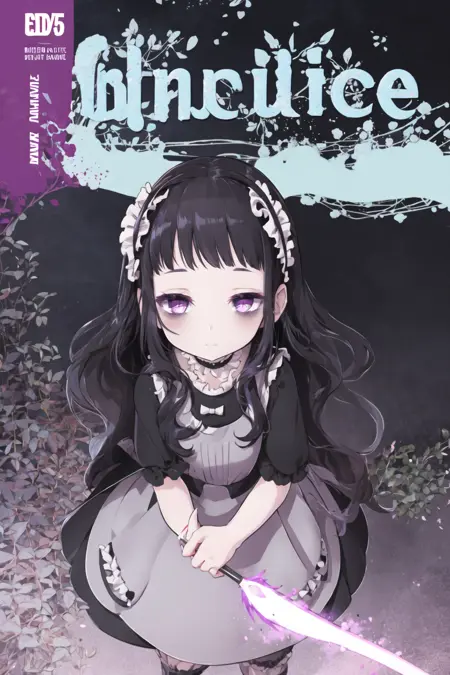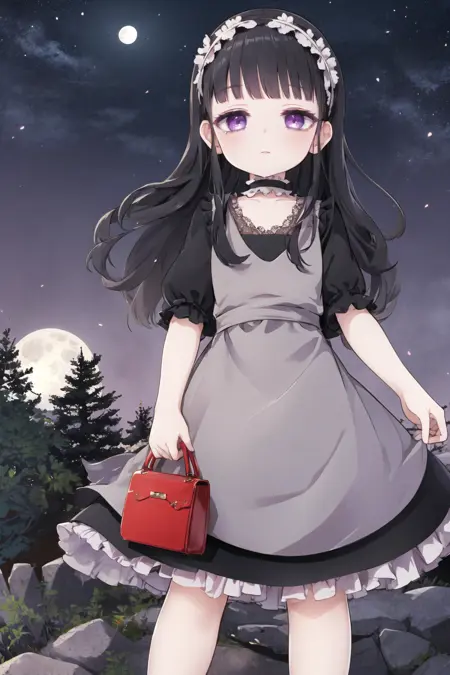 hardgore alice,洛丽塔发带,眼下黑眼圈,紫色眼睛,黑发,黑色连衣裙