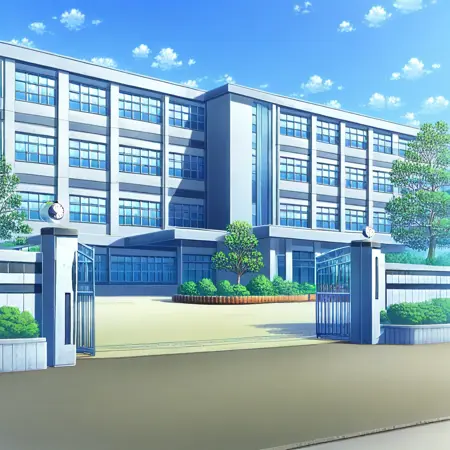 这是一个两侧带有围墙的典型校门,具有很好的学习价值和高度的通用性。