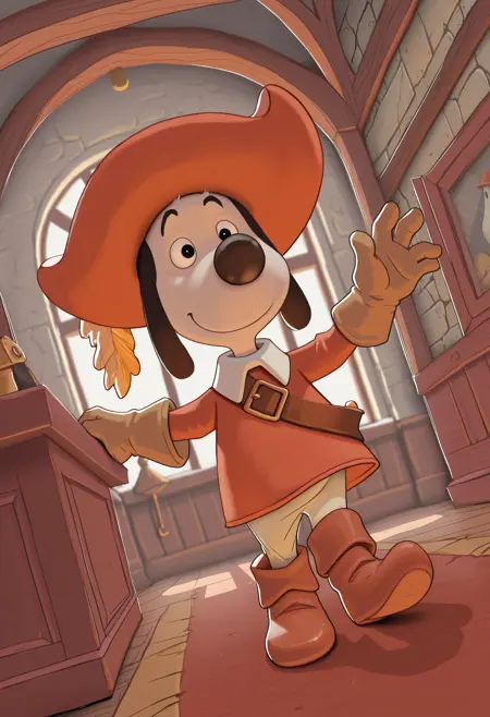 Illustrious: best quality, amazing quality, very aesthetic, absurdres, newest, dogtanian, dogtanian_and_the_three_muskehounds, 1boy, solo, hat, gloves, boots, ...your tags...