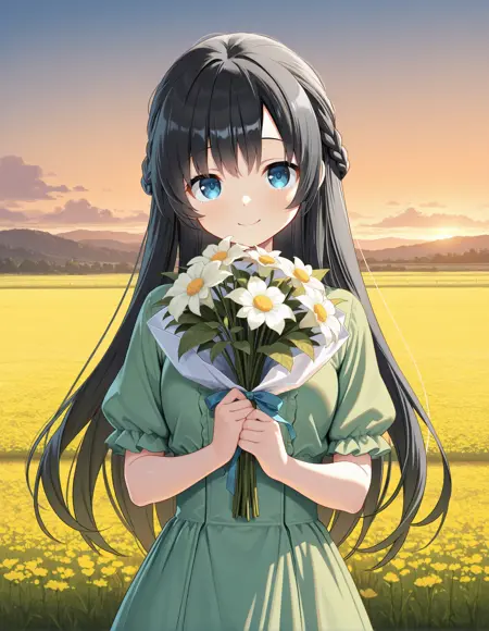 외모: 검은 머리, 긴 머리, 푸른 눈
